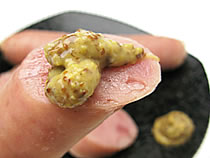 何も付けなくても十分美味しくお召し上がりいただけますが、マスタードを付けると、脂の甘さが引き立ちます♪