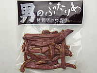 ぶたりめを袋から出してそのまま食べても十分美味しいのですが、アタリメのようにマヨネーズや七味唐辛子を付けても美味しくいただけます。 お酒のおつまみとして定番の座を狙い続けるぶたりめ。飾り気のない素直な味が多くのお客様に支持され、連日完売の人気商品になってるんでしょうね♪ 夜のおつまみとして購入したはずが、明るいうちに味見をしたところ、ついつい箸が進んで無くなってしまい、再び買いに出かけたことがあるのは私だけではないはずです。 |